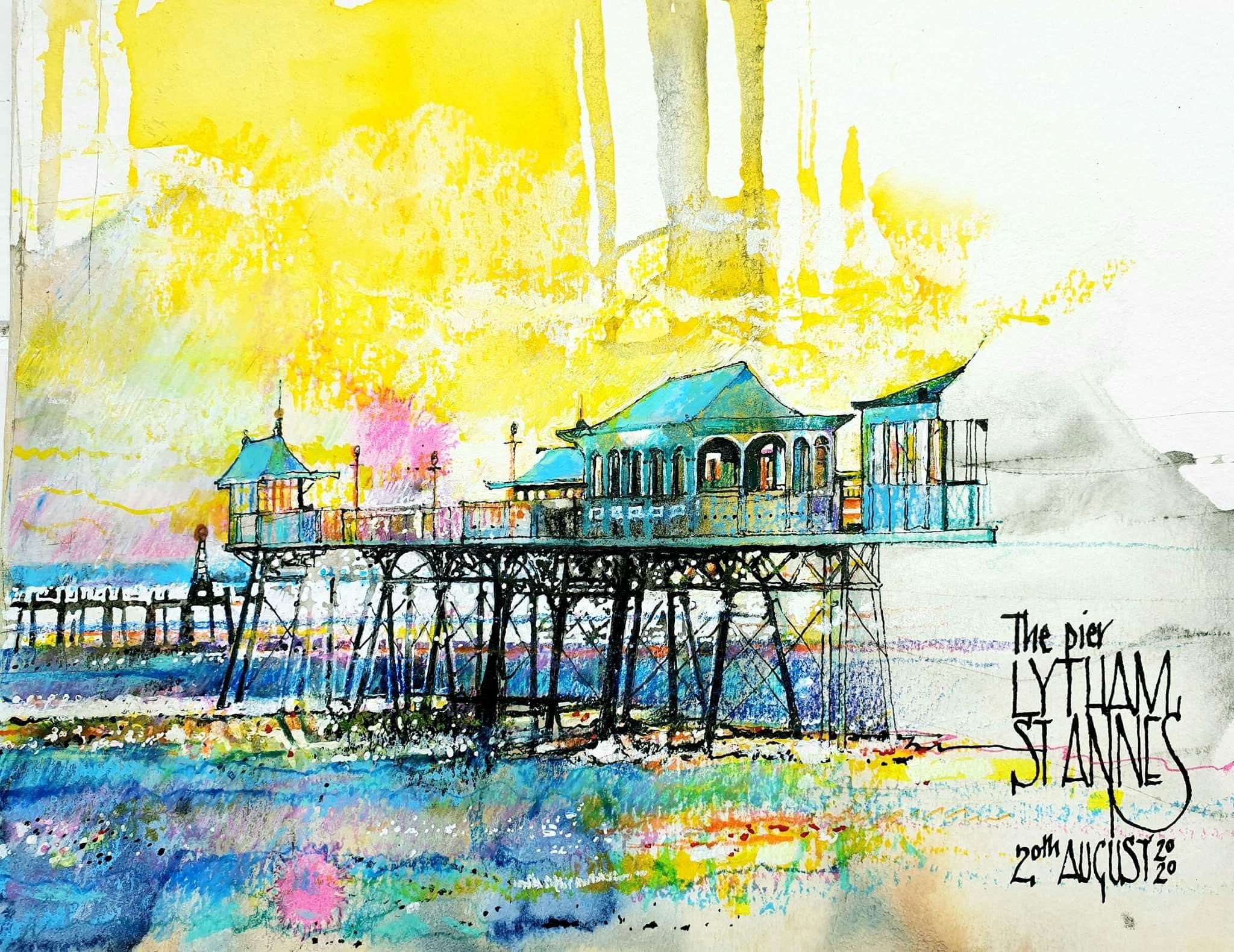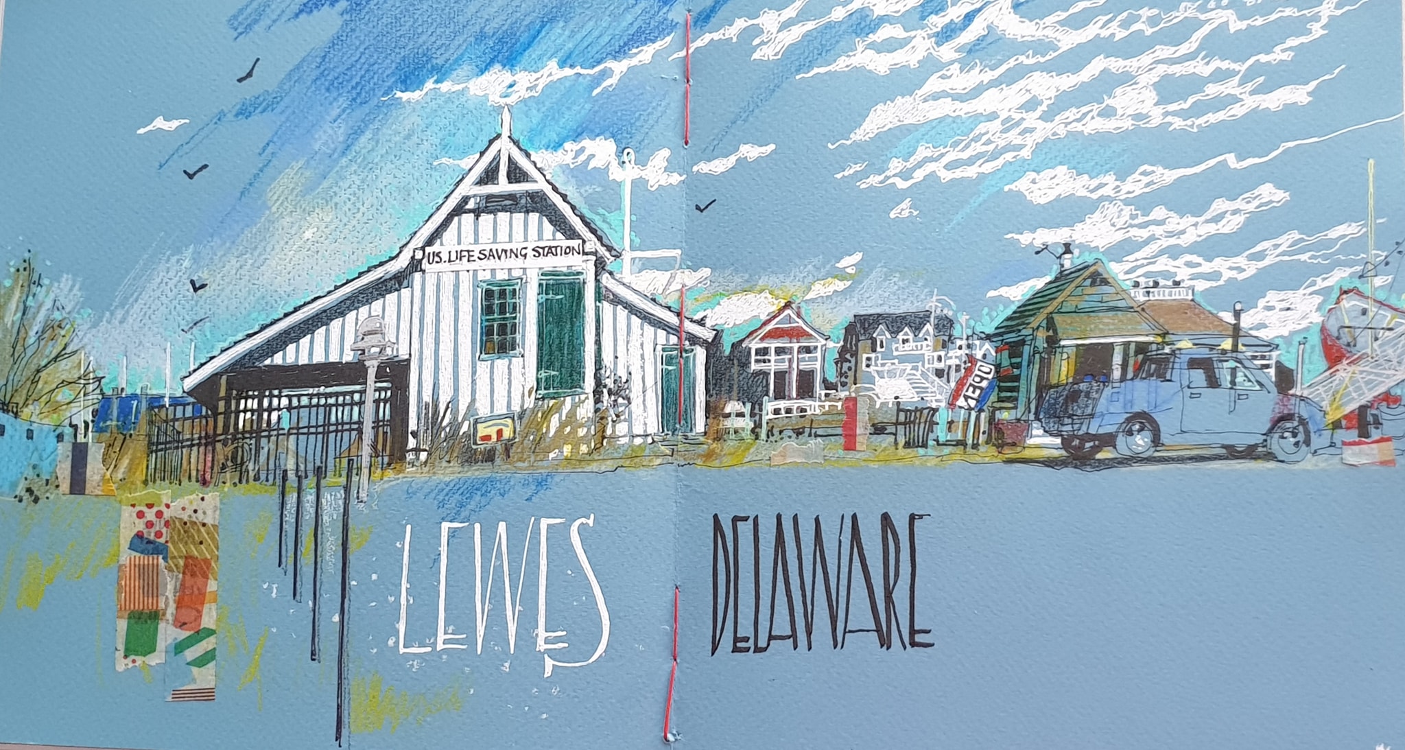 My sketches are responses to the feel of a place : the atmosphere, the cold, the heat, the quietness, the happiness of a crowded beach, days end and its brilliant colours..never just marks and lines on paper. I draw intuitively and quickly, working all over the page at once and it just grows. If I have a colour in my hand I’ll ask “Where else can it go?” . And that keeps things balanced and unified. 8 years ago, after a lifetime of drawing on white, I bought a grey Strathmore sketchbook, then a Seawhite Kraft one and I was hooked. Pure magic; what a revelation: so much more fun and potential!  And lately, all kinds of colours, different kinds of papers, pre-prepared experimental backgrounds and digital, too: fascinating.