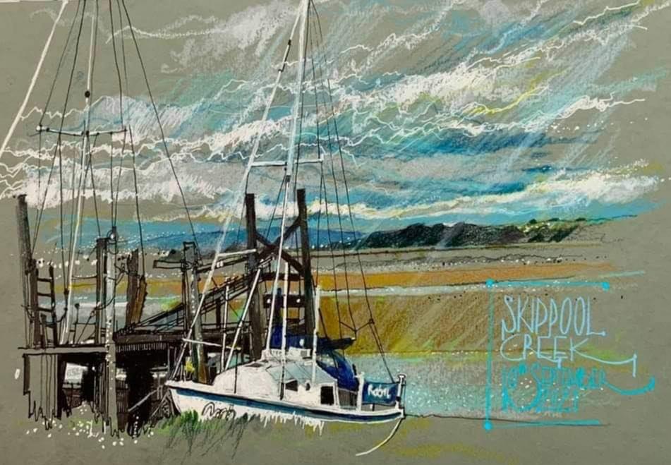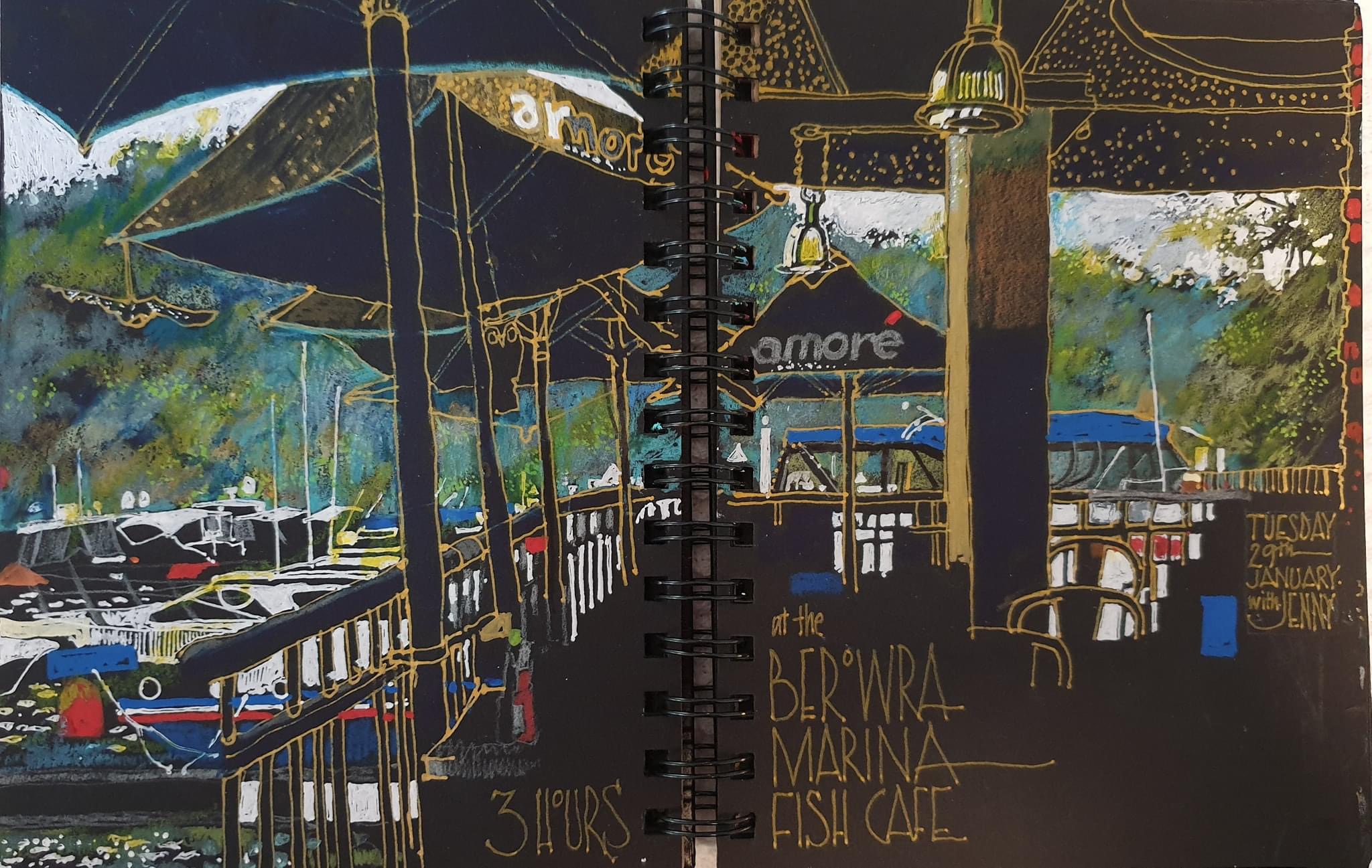 My 5 years at Art School in the Uk, training as a Painter, in oils, gave me a strong base of practice and experience that I shall be forever grateful for. We were fortunate to have a new painting tutor, join us, early on, fresh from the Welsh valleys: bags of energy and uber-talented. He had us out sketching every week, in all weathers, even in snow, with easels, in oils and in gouache. We were taught to be free, to value everything we did and every Friday our work was propped up and critiqued, like today’s USK Sketch Meet throwdowns. Our sketchbooks and sketching were a part of us and it’s stayed.