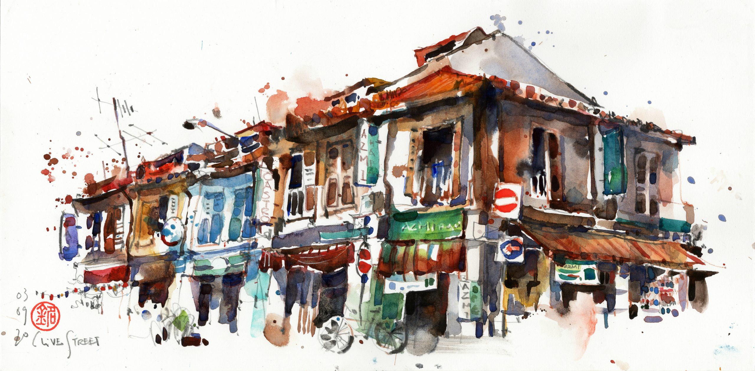 Urban Sketching is now his unique way of encapsulating the urban landscape on paper and using sketches to tell stories. Many of his on-location sketches have been featured in local and international publications like the Moleskine Art Journal series and most recently the National Geographic Traveller magazine.